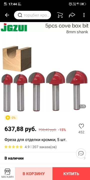 Одна фреза из набора оказалась с хвостовиком 6мм, но была приложена втулка-переходник на 8мм. Я не в обиде, зато прислали за 10 дней. Молодцы, спасибо!
