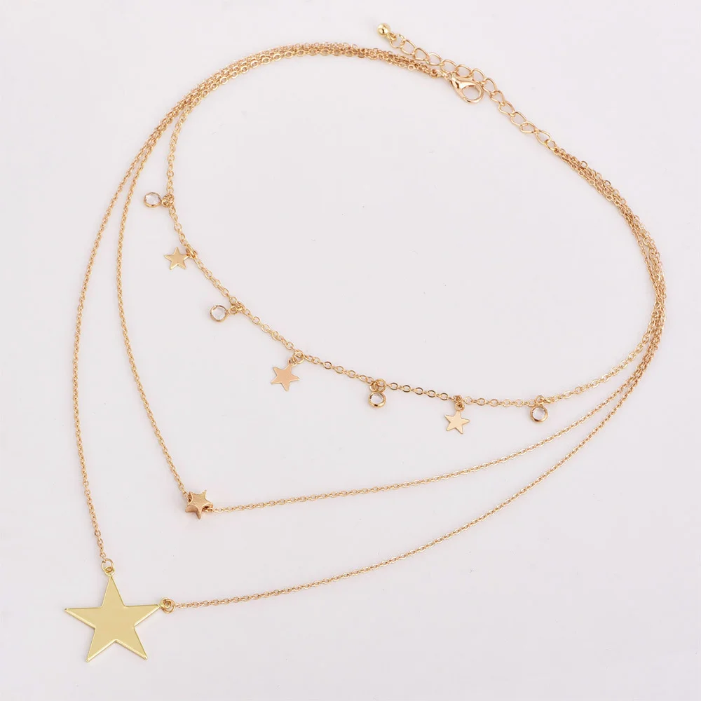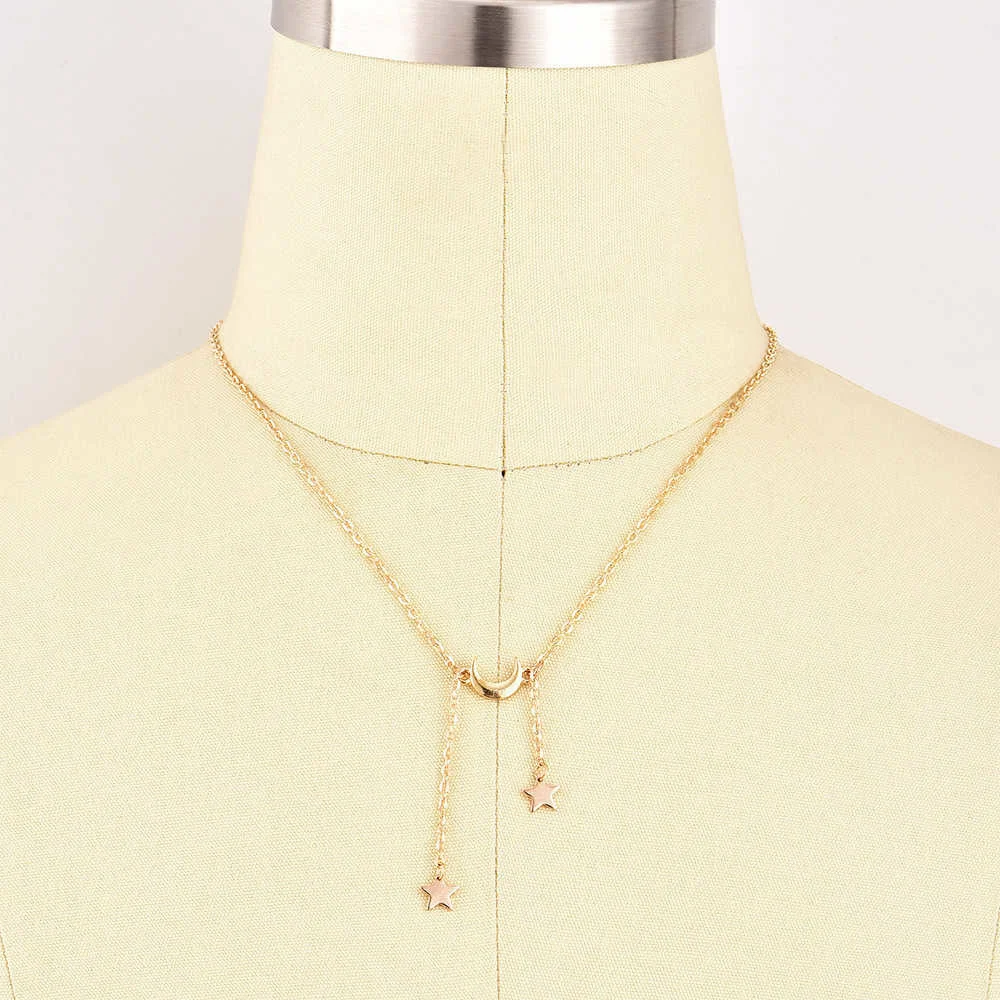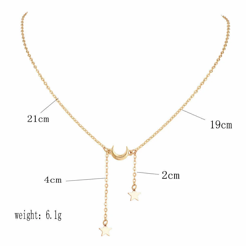 Винтажное колье-чокер с Луной, женское Золотое колье, ювелирные украшения для вечеринок, многослойные ожерелья