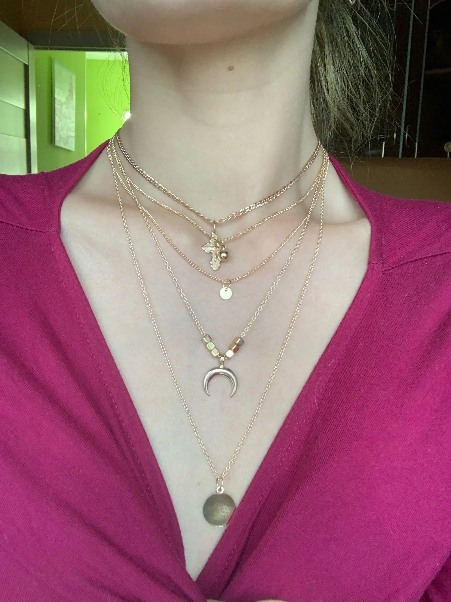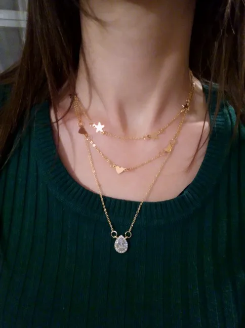 Очень милое ожерелье, заказывала его к топу, очень красиво смотрится. Позолоченость не слезает.