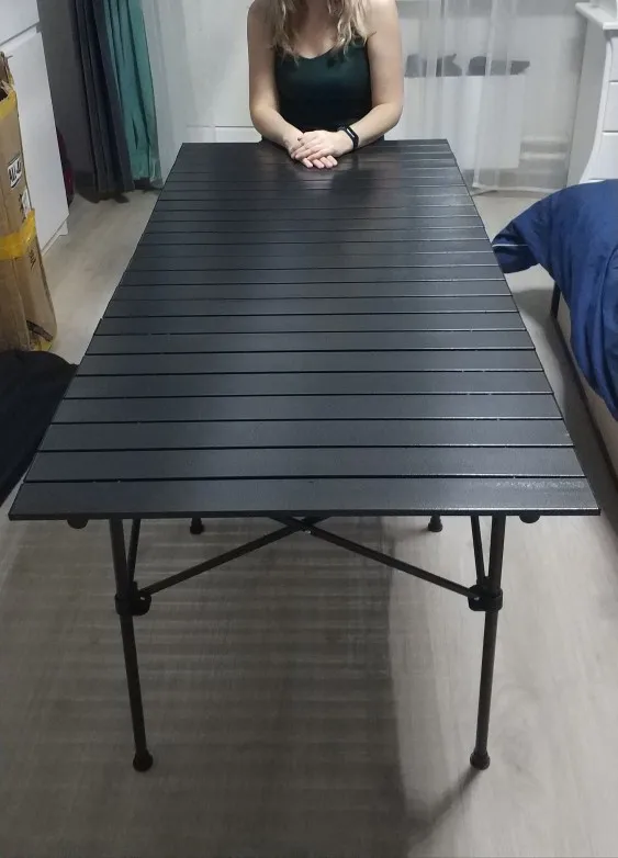хороший, надежный боьшой стол, как на фото. легко собирается. можно расположиться в пятером за ним. для пикника идеальный вариант. продавец надежный, доставка 2 недели.