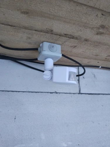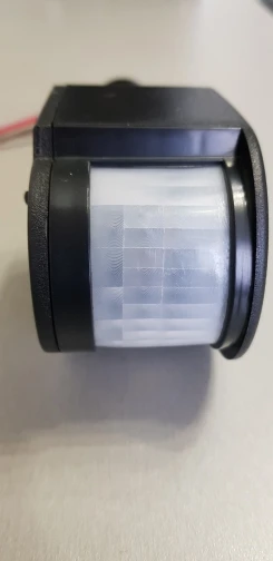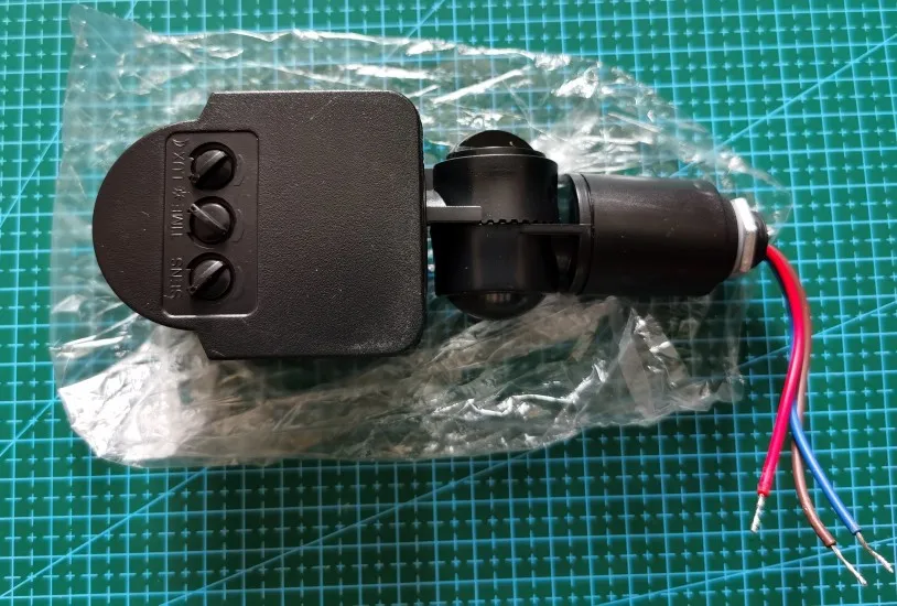 Работает, месяц как уже. В прямой видимости срабатывает метров за шестнадцать, но это зависит от того как отрегулировать. Если с боку заходить, тут уже по хуже метра два три, но опять же, предположительно зависит на какой высоте находится датчик.