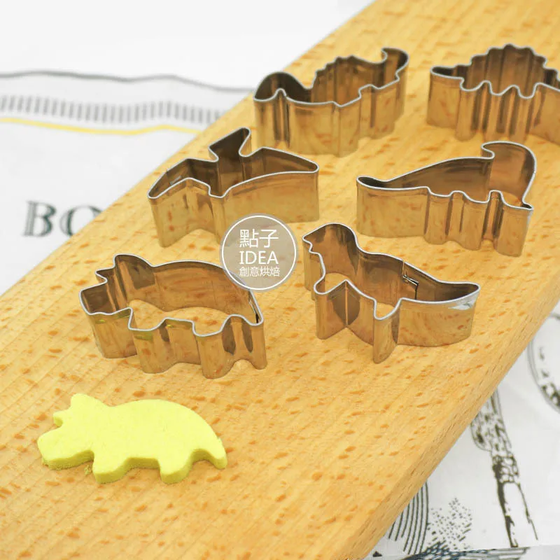 Новинка 6 шт.компл. штампы для печенья в форме динозавра из нержавеющей стали инструменты для печенья инструменты для украшения формы для выпечки тортов, резаки для печенья