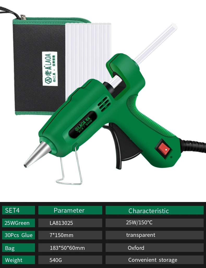 Пистолет для термоклея LAOA 25 Вт40 Вт8 Вт100 Вт с сумкой 7 мм термоклей Hot пистолет для плавки