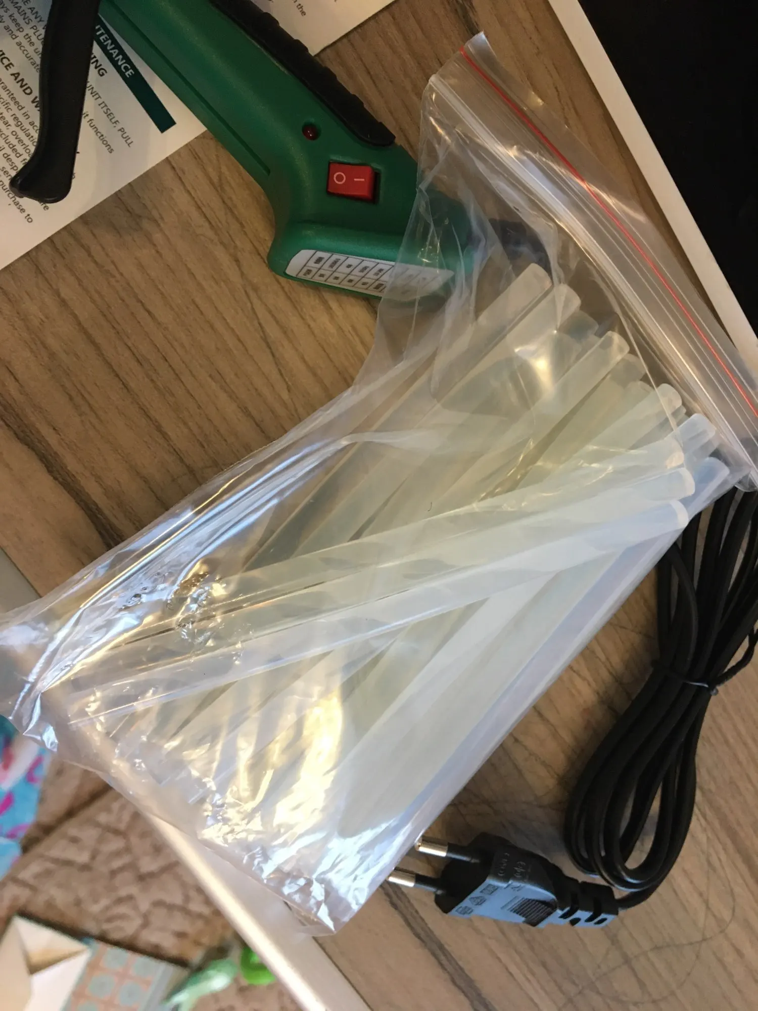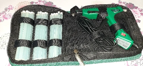 Пистолет хороший, маленький, удобный. 30 клеевых палочек, быстро нагревается, не течет. Удобный кейс. Спасибо продавцу.