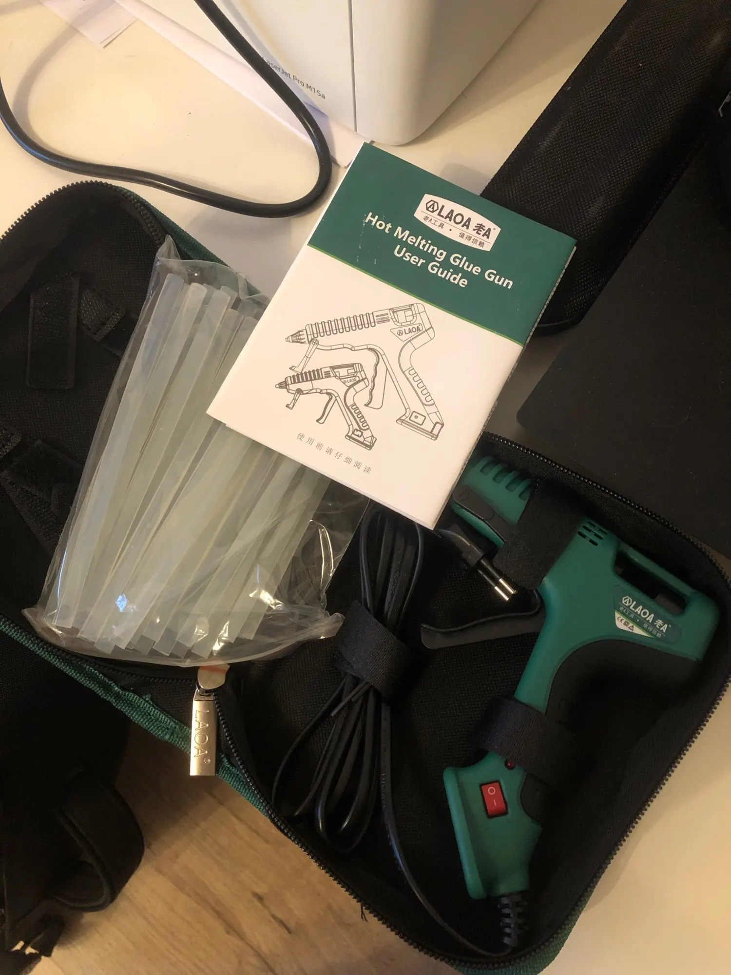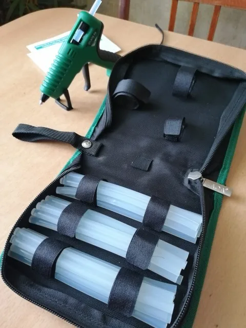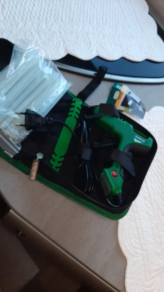 Маленький клеевой пистолет очень практичный и эффективный. Клей хорошо выполняет свою функцию и не выпадает из пистолета, перевернутого вверх дном. Очень доволен моей покупкой! Кроме того, все находится в этой маленькой сумке, легко носить с собой и хранить. Очень быстрая доставка из Испании. В релейной посылке близко к дому.