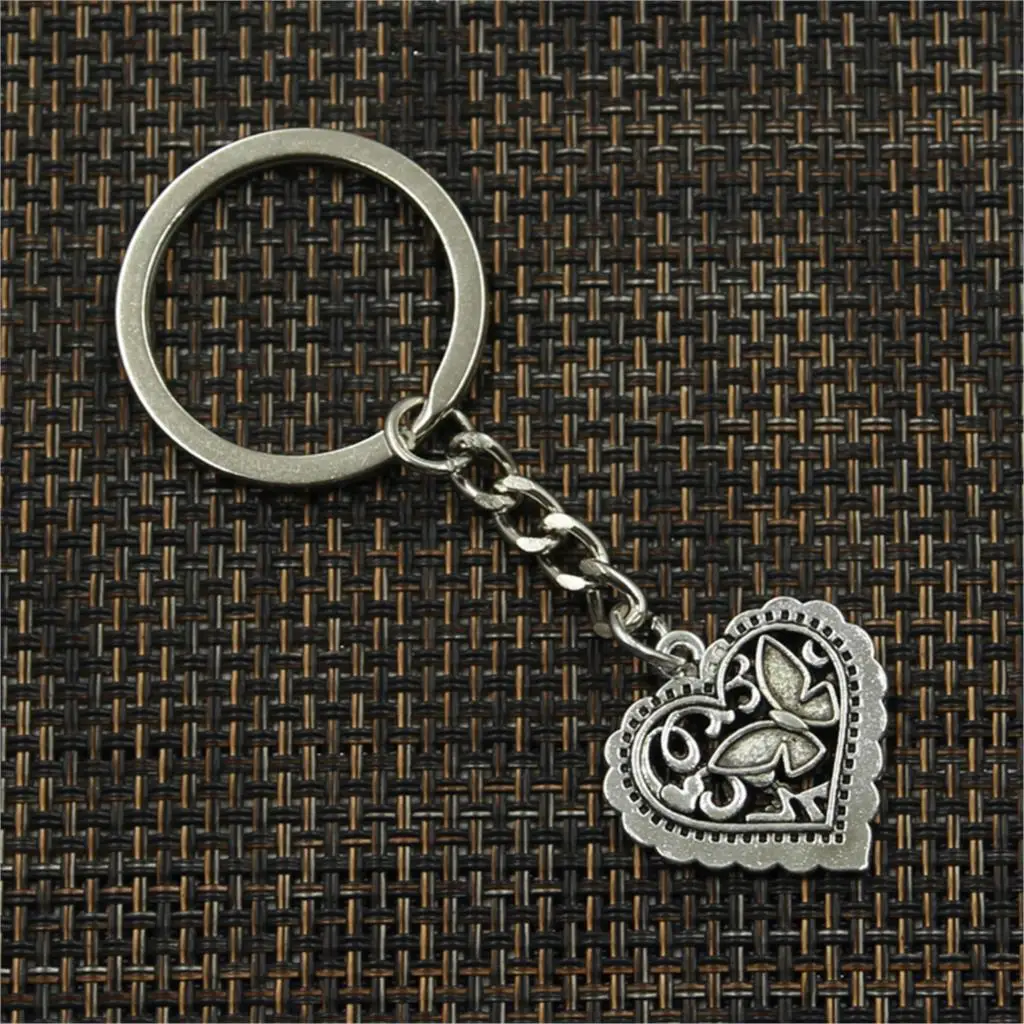 Новый модный мужской 30 мм брелок DIY металлический держатель цепочка Винтаж Сердце Бабочка 25x24 мм Серебряный цвет кулон подарок