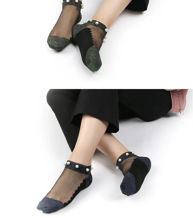 Носки женские кружевные, шелковые, эластичные, 1 пара = 2 шт., ws409