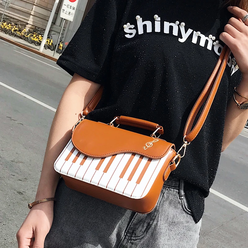 Сумка-мессенджер женская из искусственной кожи, с рисунком пианино, Черная