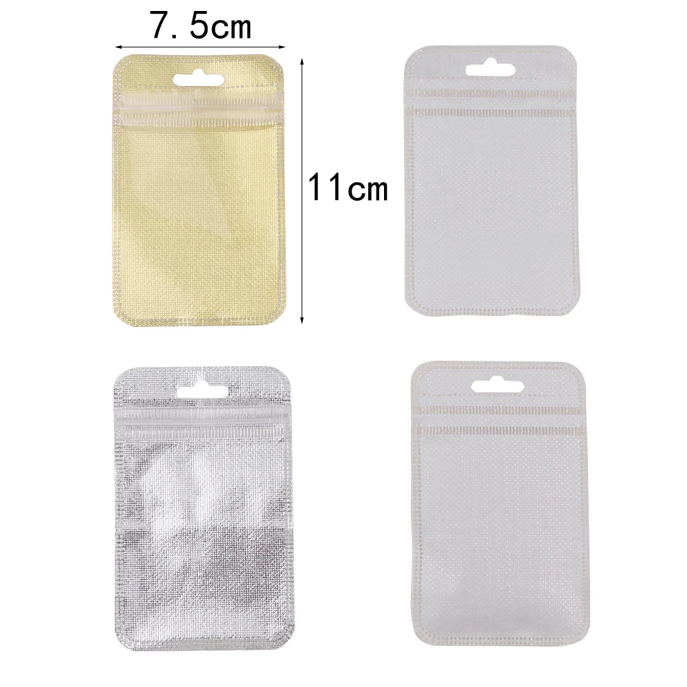 Золотистая Серебристаяпрозрачная Самоуплотняющаяся застежка-молния, 7,5x11 см, пластиковая Розничная упаковка, полиэтиленовый пакет, стандартный пакет, пакет с отверстием для подвешивания