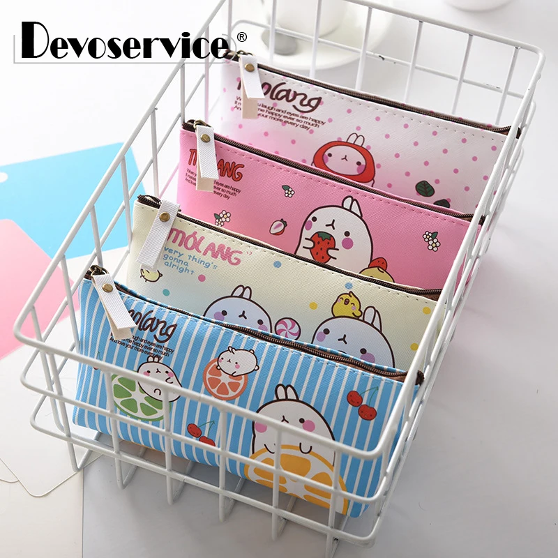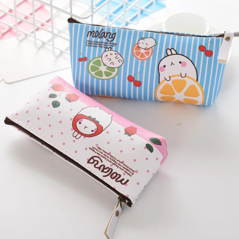 1 шт., милый чехол-карандаш с мультяшными животными из искусственной кожи, каваи, молан, пенал с кроликом, чехол-сумка, пенал, школьные канцелярские принадлежности