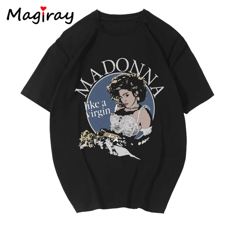 Крем Madonna Like A Virgin с буквенным принтом Футболка для женщин 2020 летнее платье размера плюс панк Kpop топ черные повседневные футболки Tumblr Femme C226
