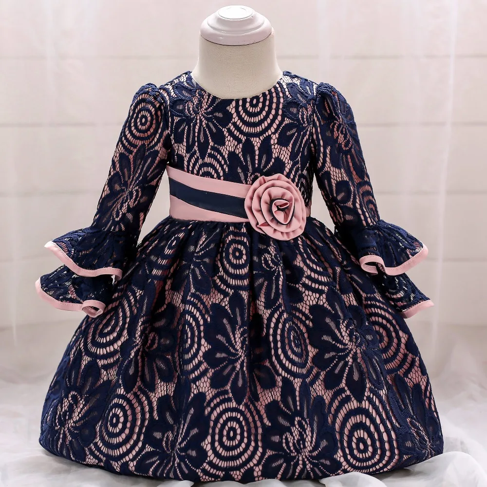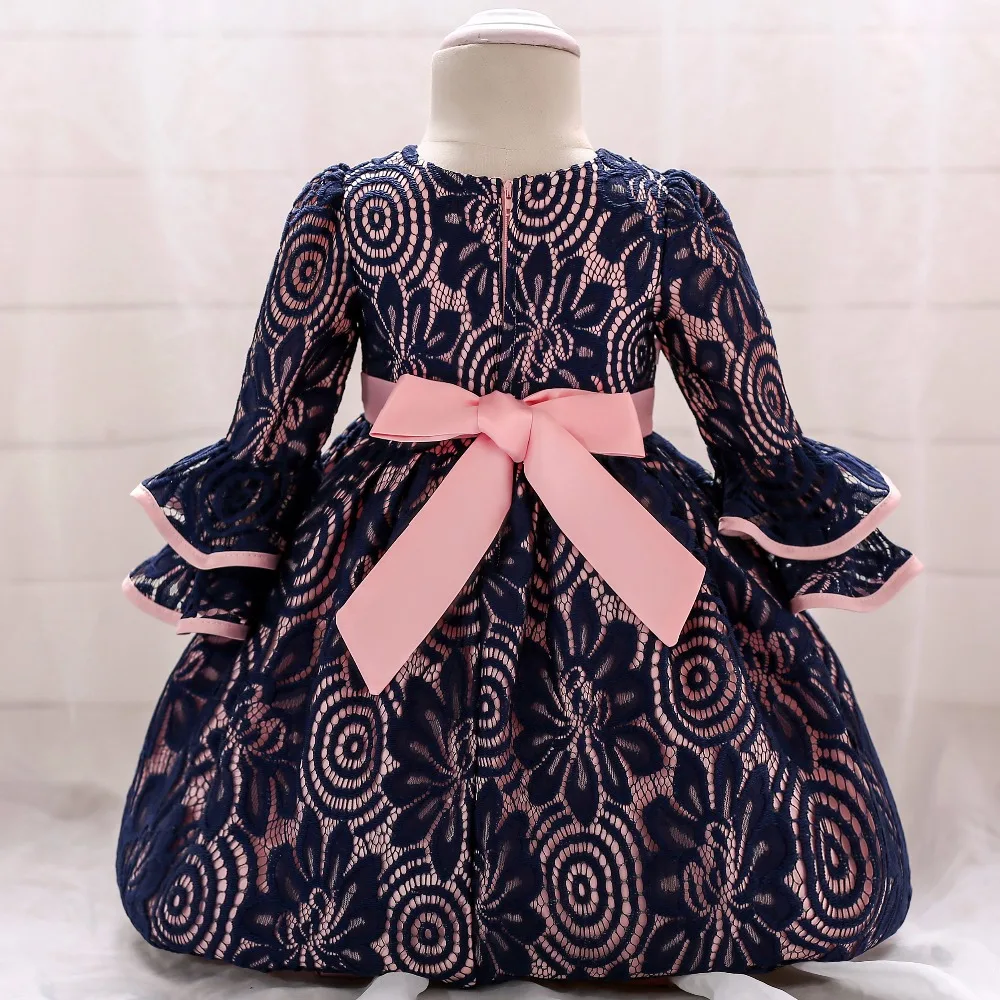 Осеннее платье для девочек с длинным рукавом, белые платья для крещения, одежда для маленьких девочек на 1 год, день рождения, кружевное бальное платье для маленьких девочек на крещение