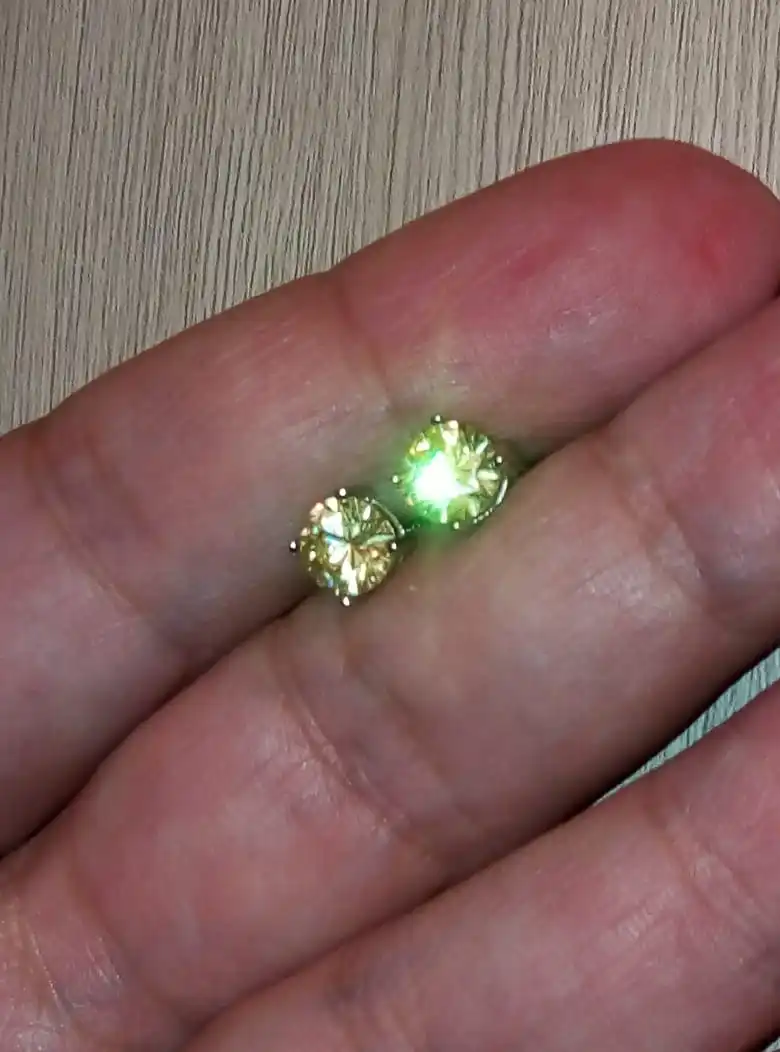 Первое впечатление - полный восторг. Мне очень понравились гвоздики! Они тааак сверкают!!! Камушек 6 мм. Кому важно, есть какие-то клейма на застёжке и на самом гвоздике, но ввиду маленького размера изделия, я не смогла их прочитать. Пришли в коробочке, вполне можно подарить в такой упаковке. Только цвет на фото продавца поярче, в реале камень бледнее, слегка зелёный оттенок. Жаль, что не разбираюсь в металлах и камнях, и сравнить мне не с чем, раньше бижутерию не носила. Время расскажет о качестве.
