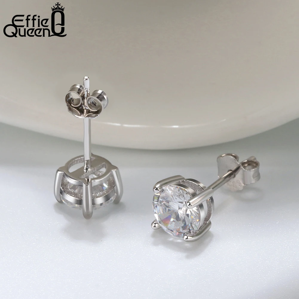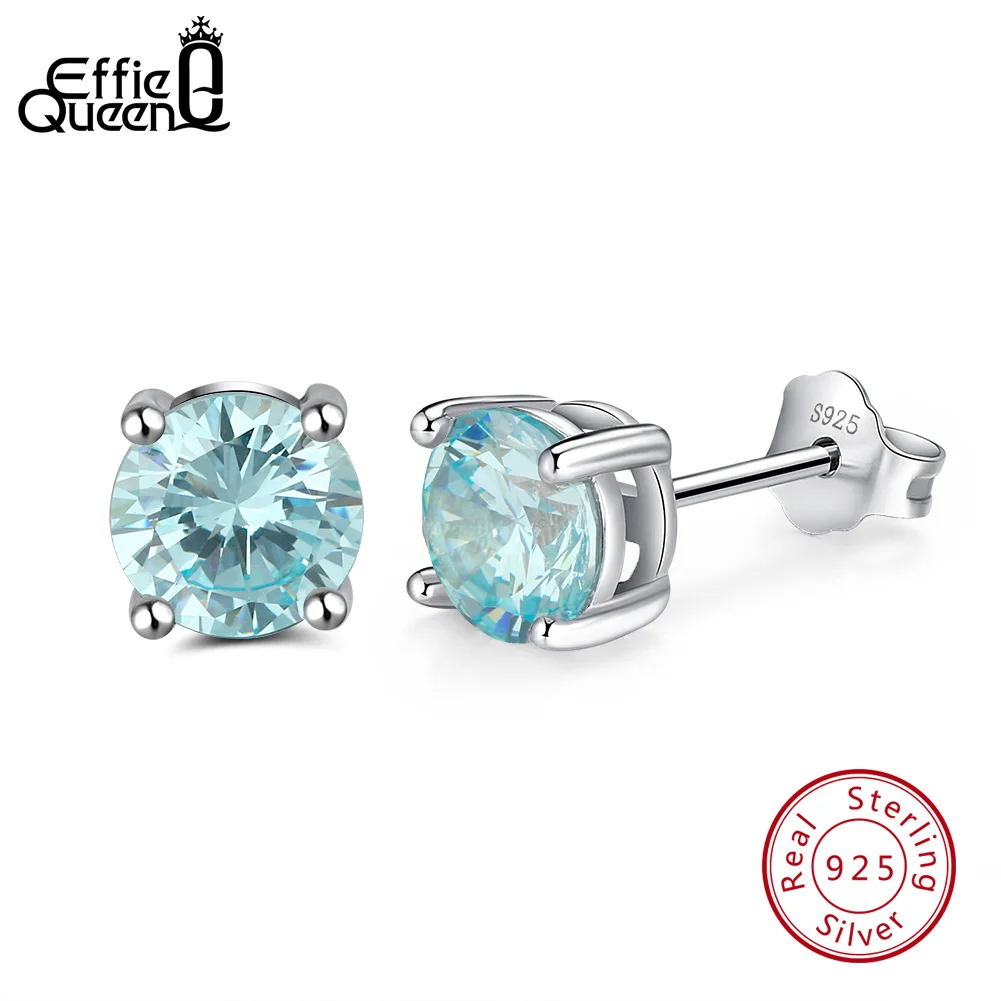 Серьги-гвоздики женские из серебра 925 пробы с фианитами, 12 цветов
