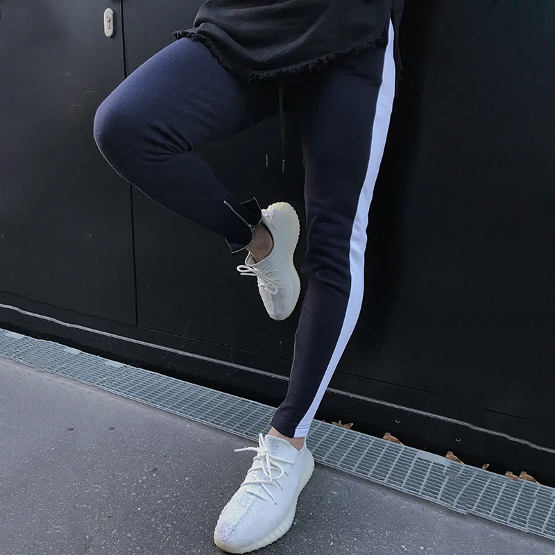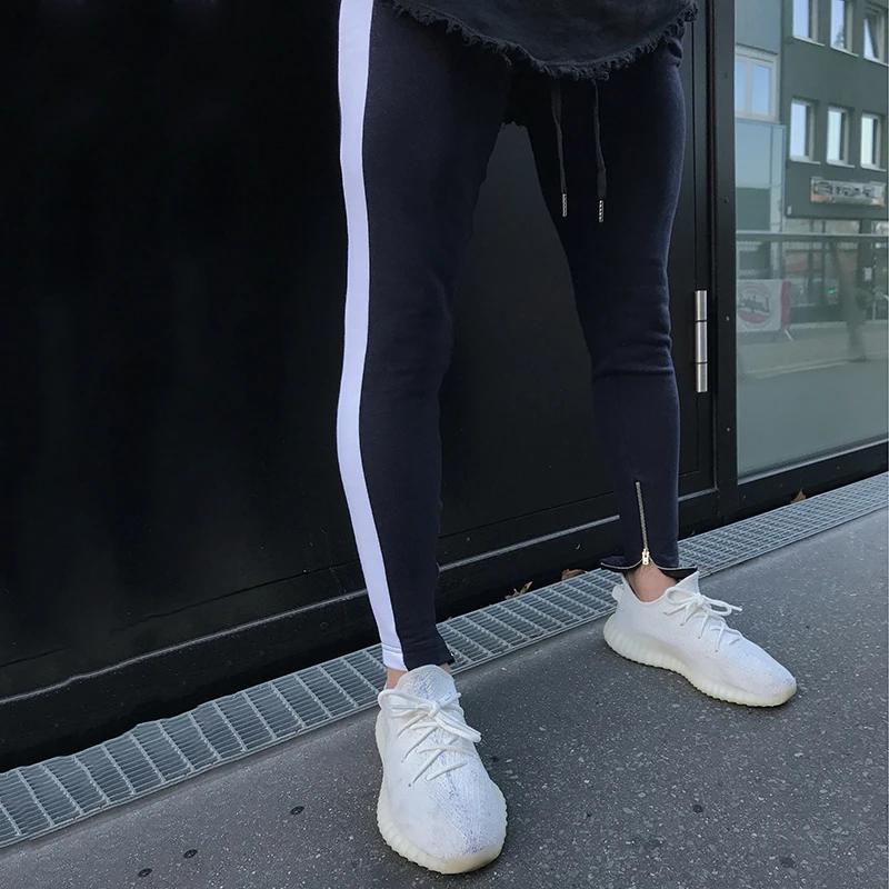 Мужские тренировочные штаны, черные спортивные штаны с боковыми полосками, на молнии, на завязках, спортивные штаны для бега, 2018