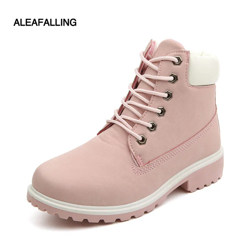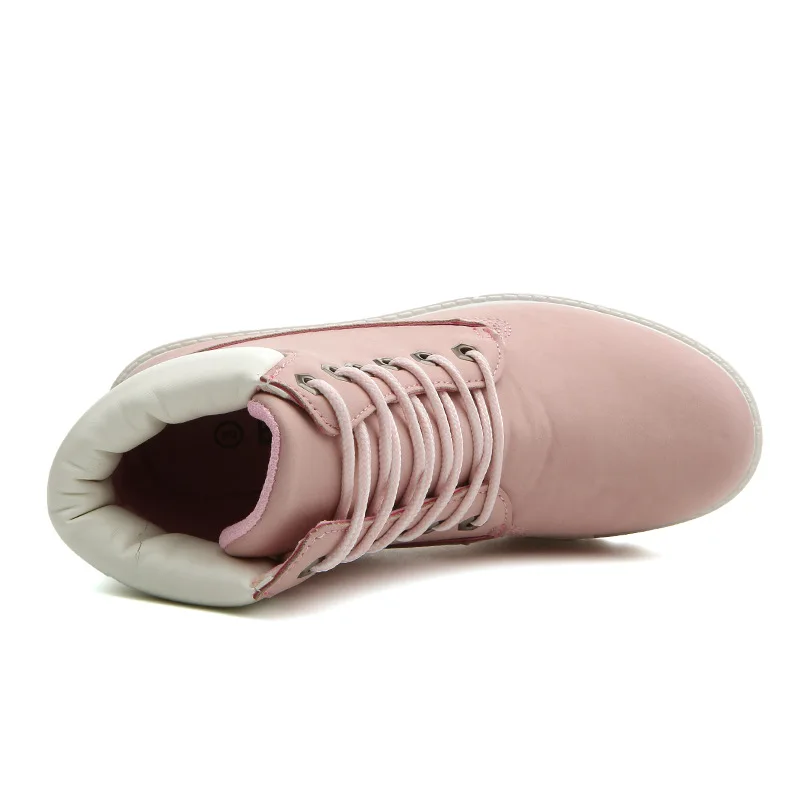 Ботинки женские осенне-зимние, розовые, черные, белые, на шнуровке