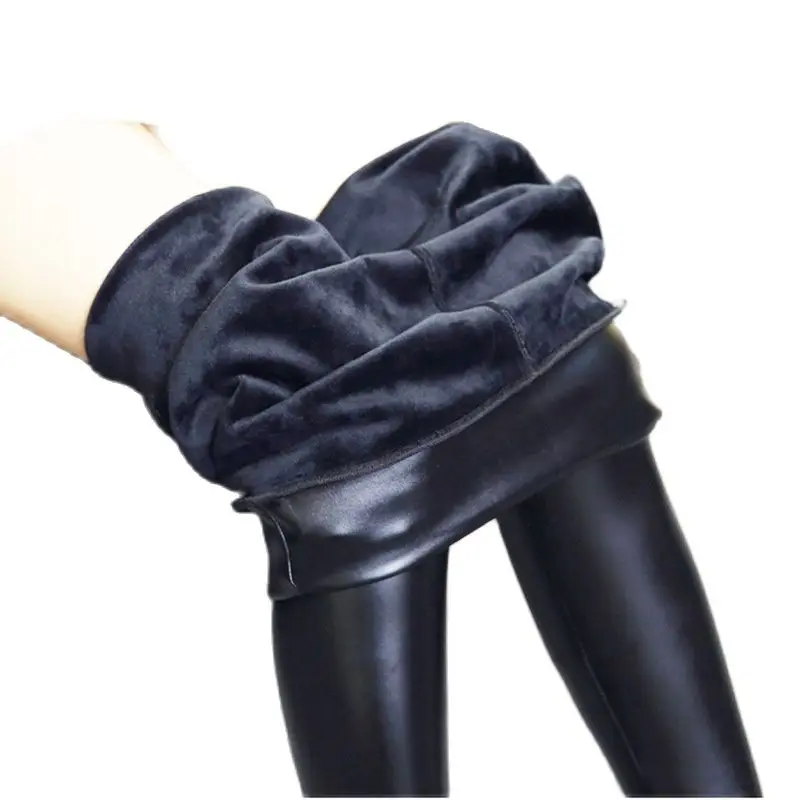 Женские плотные кашемировые леггинсы из искусственной кожи, эластичная верхняя одежда, большие размеры, однотонные штаны из искусственной кожи, уличные легинсы