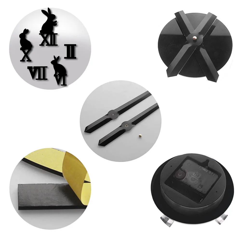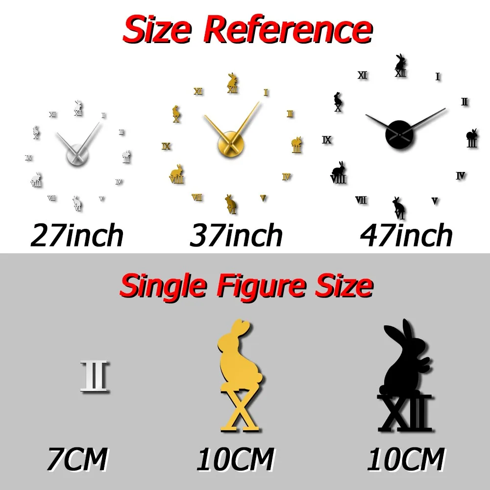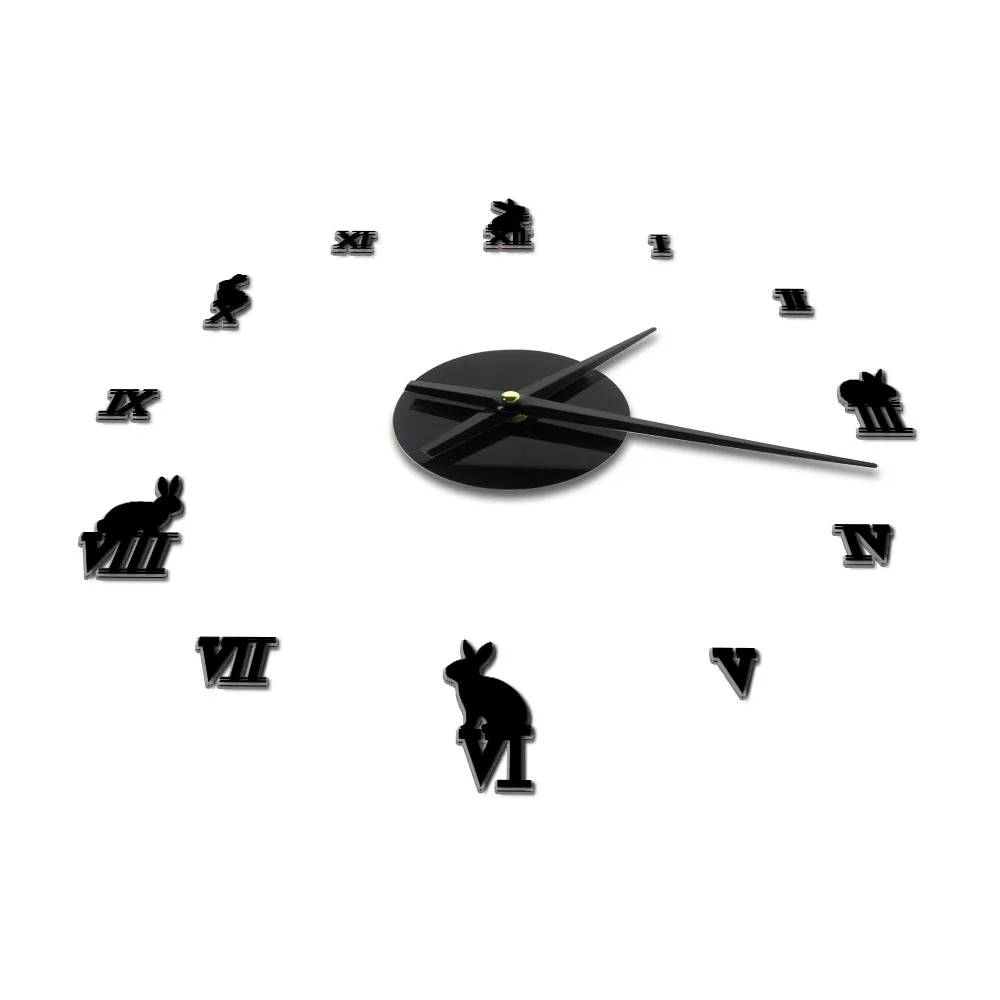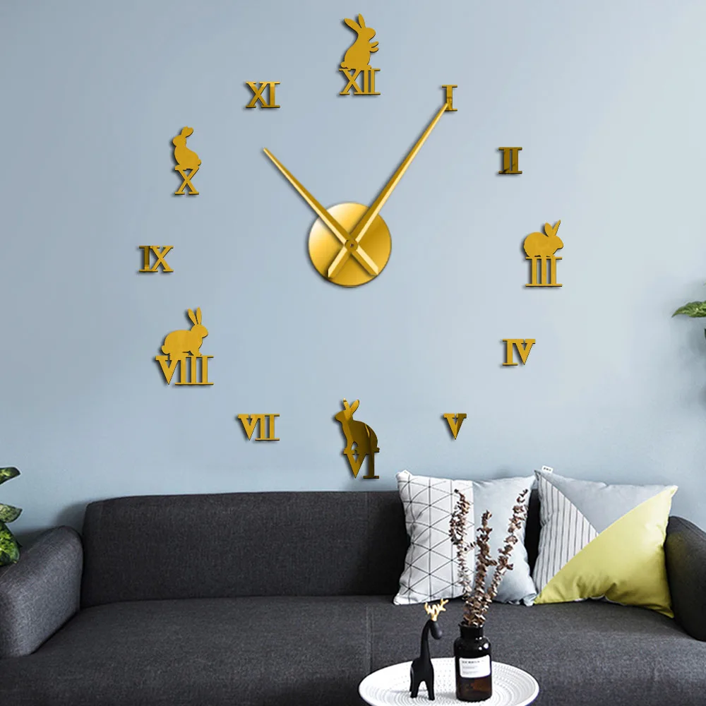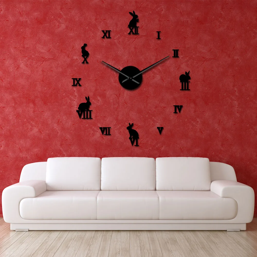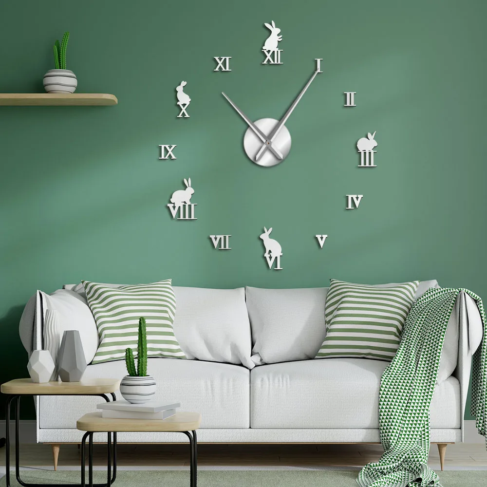 Большие настенные часы сделай сам в виде кролика с римскими цифрами, украшение для детской комнаты, гигантские настенные часы без рамки, настенные 3d-часы с зеркальным эффектом, наклейка на стену