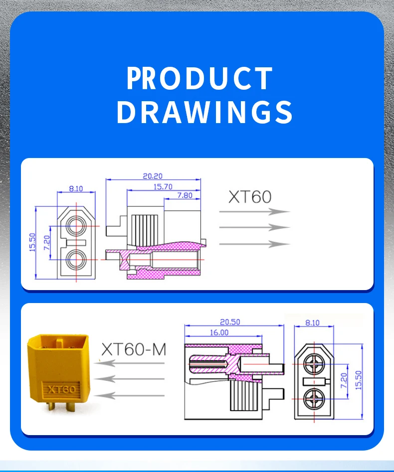 Штекер-гнездо XT60 100, XT30 T, 1XT-60 шт.