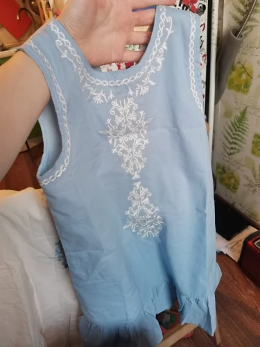 я в восторге от этого платья, тонкий хлопок с вышивкой, на подкладке, купила внучке, но и сама бы от такого не отказалась, спасибо продавцу