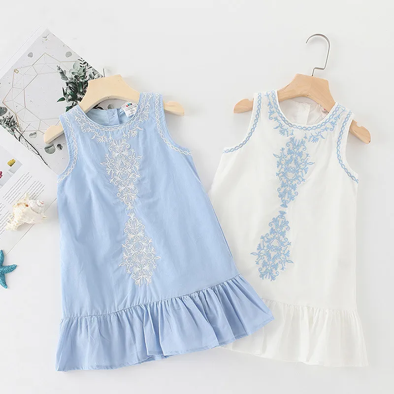 Летний Детский сарафан без рукавов, хлопковый сарафан с цветочной вышивкой, без рукавов, 2021
