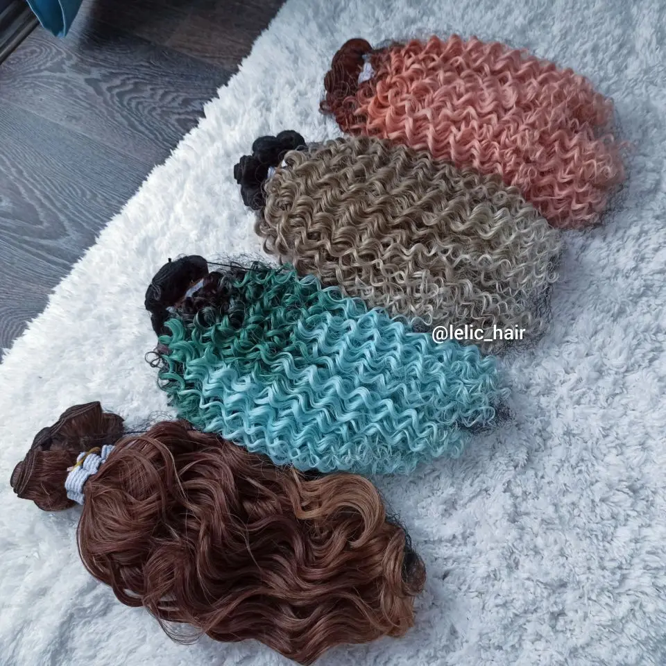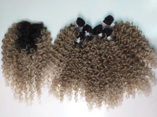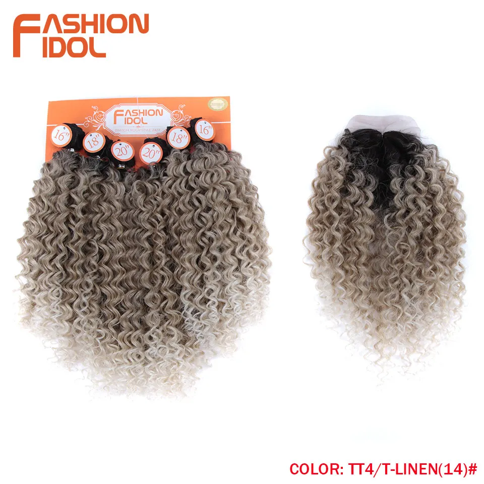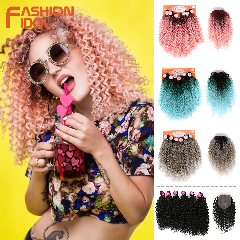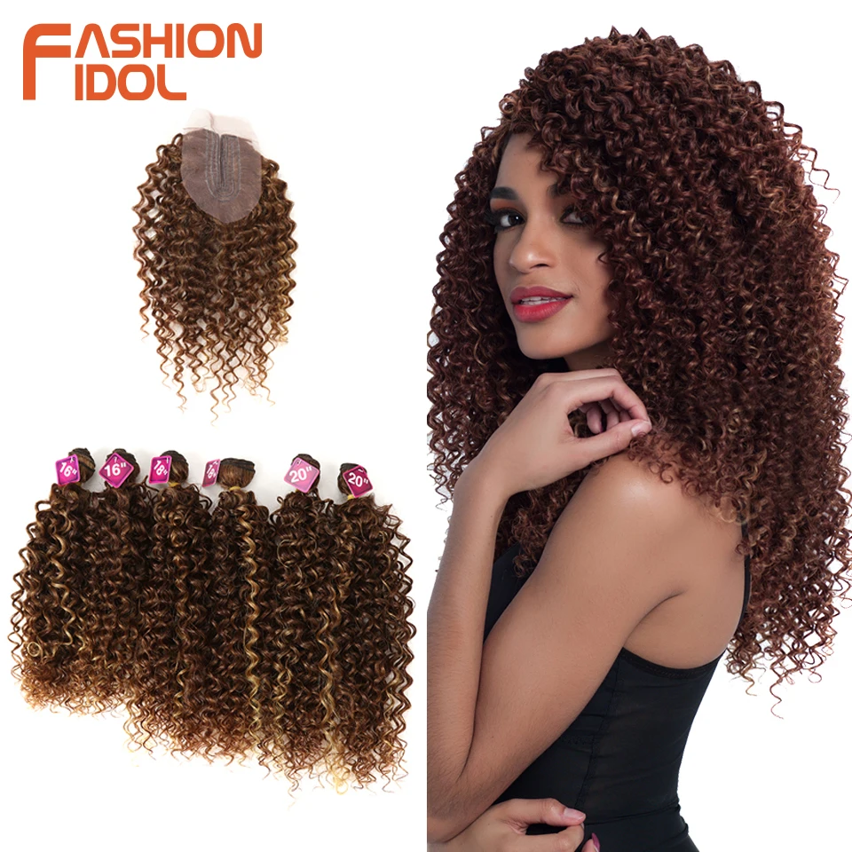 Модный кудрявый афро кудрявый вьющийся волос, синтетические пучки волос, кружево с застежкой, 16-20 дюймов, удлинители искусственных волос