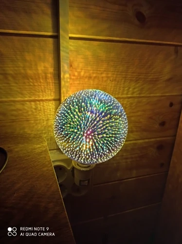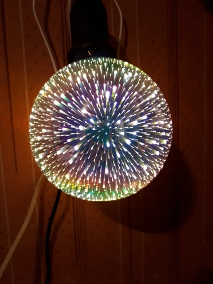 Красивая лампочка с волшебным эффектом. Внутри будто целая вселенная. Дошла за 20 дней, была очень хорошо упакована и не повредилась при перевозке. Спасибо продавцу!