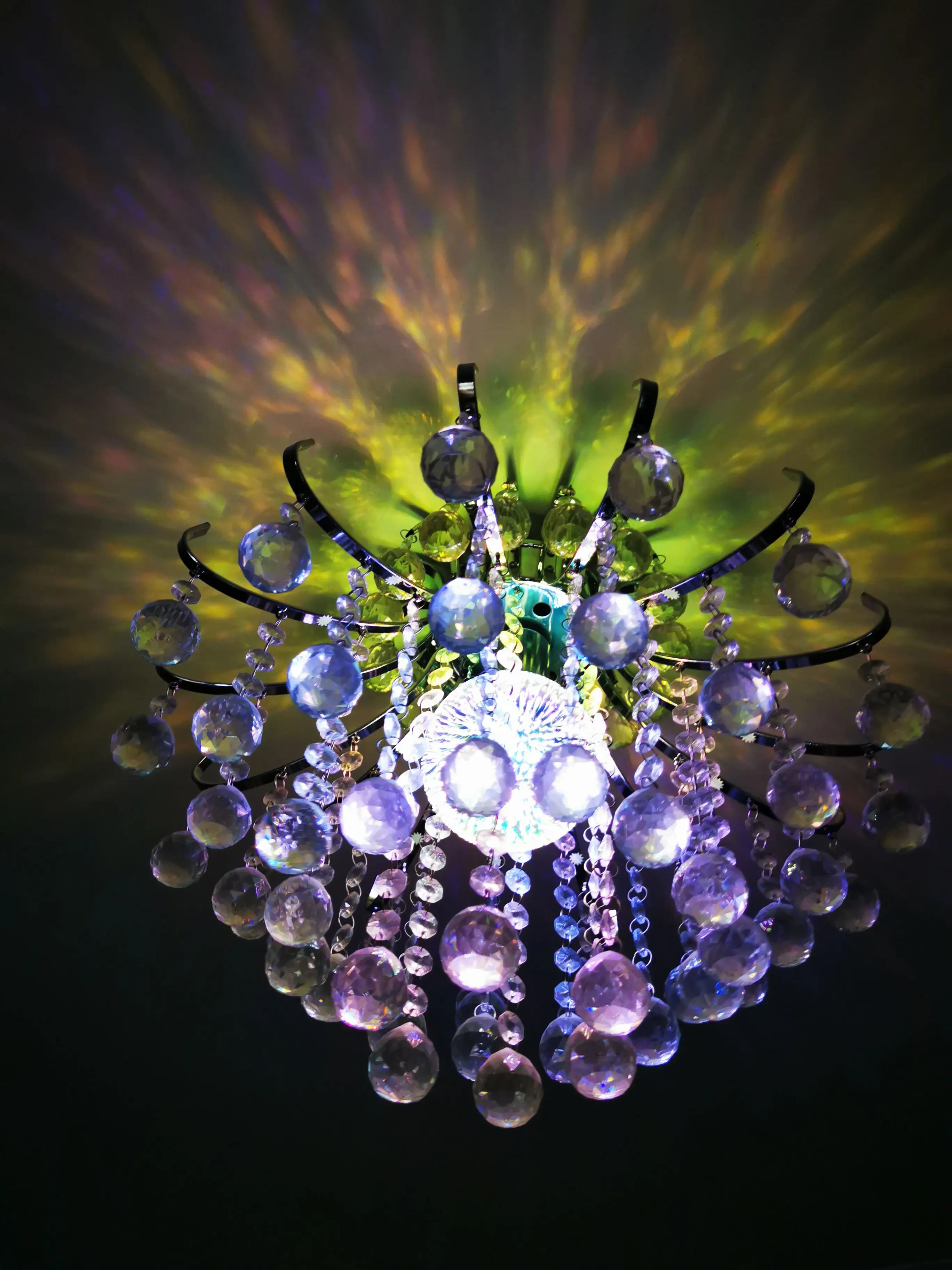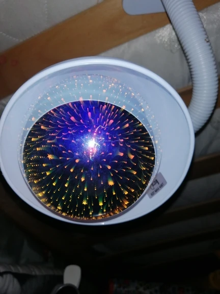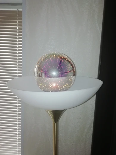 Очень красивая лампа. На моем фото не видно, но она разноцветная - как на фото продавца. Светит неярко, все как и задумывалось - в качестве ночного света и для уюта. Фантастически классная вещь. Пришла а Москву быстро, меньше месяца. Упакована очень аккуратно. Рекомендую товар и продавца!