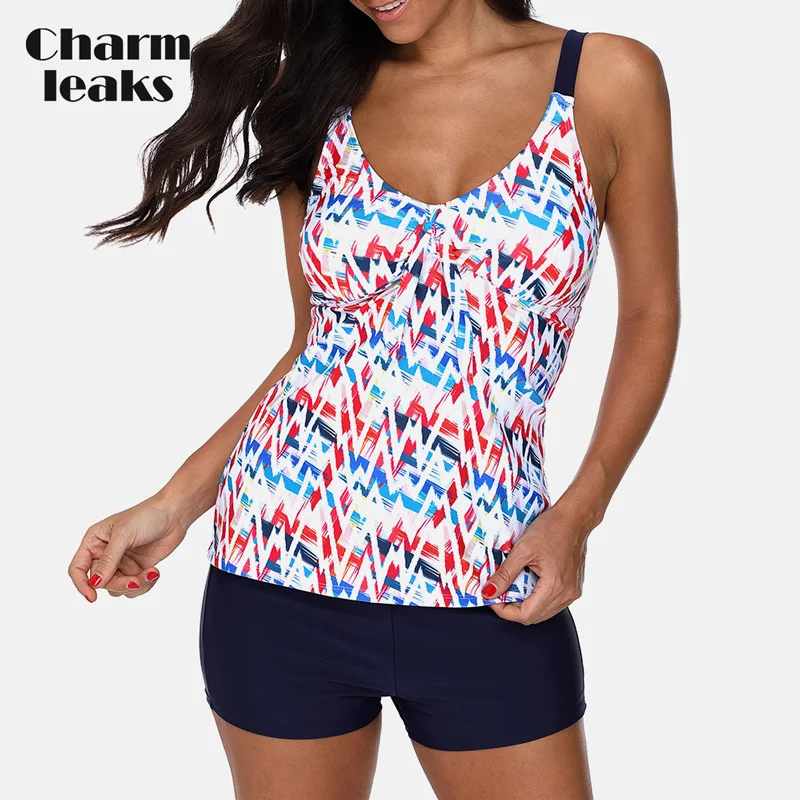 Charmleaks, ретро, с цветочным принтом, танкини, комплект с высокой талией, купальники, Женский танкини, винтажный комплект бикини, купальный костюм, бикини