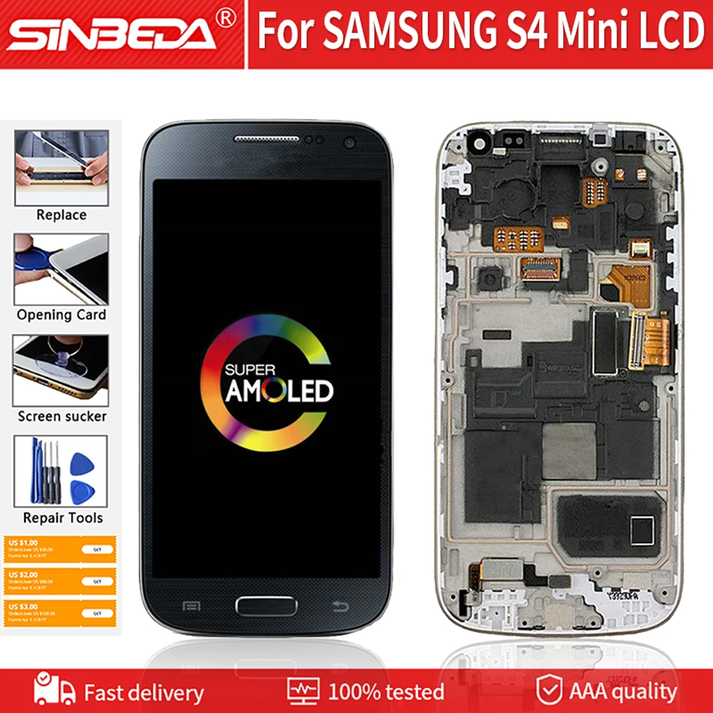Дисплей с тачскрином Sinbeda для Samsung Galaxy S4 Mini, AMOLED