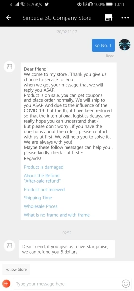 Это плохой продавец, купил два экрана, один отлично работает, другой не имеет прикосновения к экрану (сенсорные кнопки работают) поэтому пробовал получить возмещение только за один из экранов, так как товар не работает. Продавец утверждал, что я не прав, когда каждый день исправляю телефоны и даже предоставляет доказательства того, что он не работает. Продавец по-прежнему отвергает мои претензии и говорит, что это моя вина. Тогда продавец говорит, что они дадут мне только 5 евро, если я оставлю им отзыв с пятью звездами. Держитесь подальше от этого продавца. Отзывы 5 звезд могут быть поддельными, и товар работает только 50%, если время
