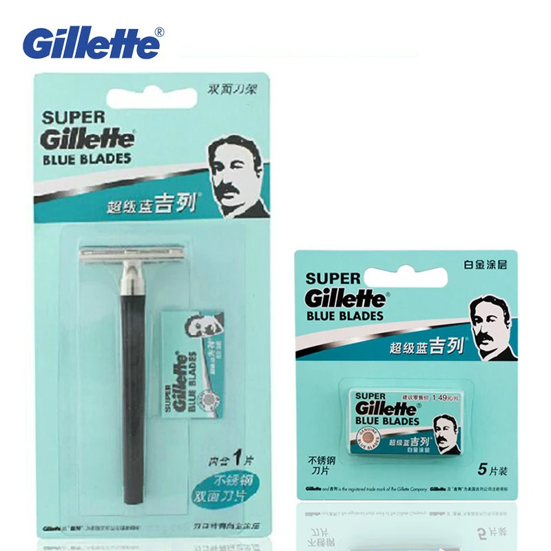 Gillette супер синие безопасные бритвенные лезвия набор для мужчин бритвы для бороды 1 ручка + 6 лезвий