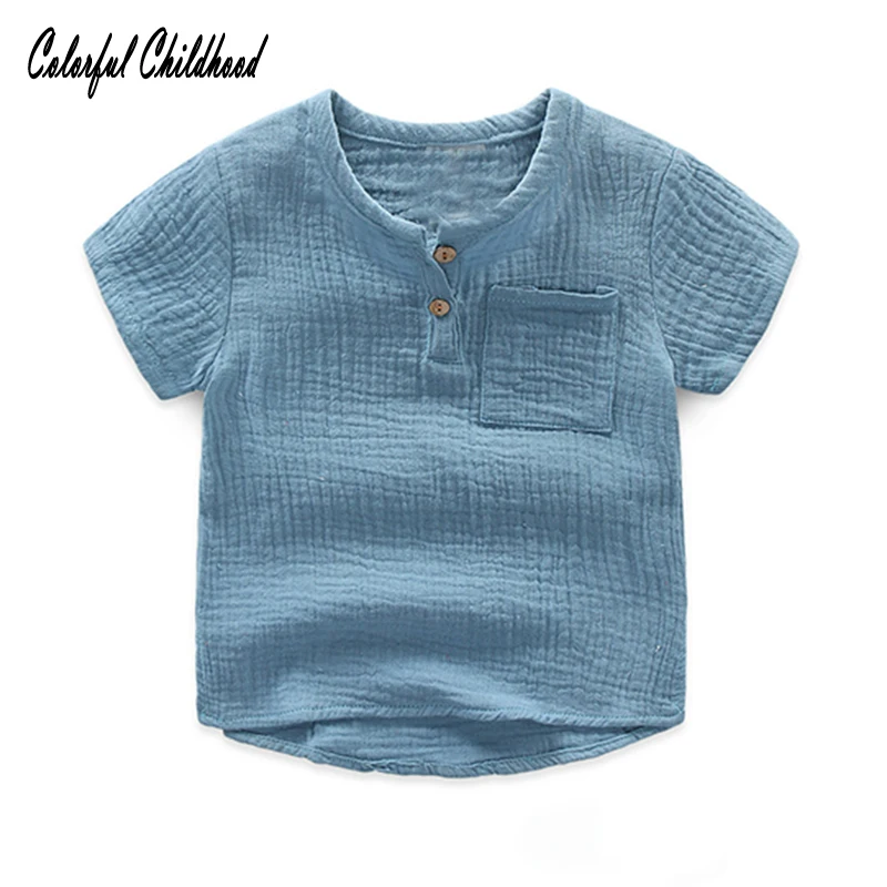 Рубашки для маленьких мальчиков, хлопковаяльняная футболка для мальчиков, школьные рубашки с коротким рукавом для мальчиков, детская повседневная верхняя одежда, 2-10 лет