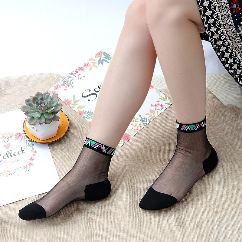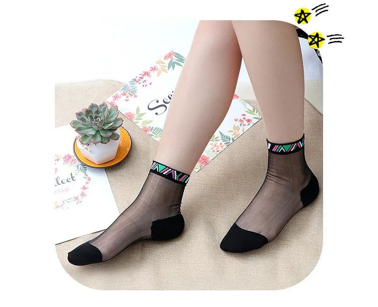Носки женские, кружевные, шелковые, эластичные, 1 пара = 2 шт., TMD02