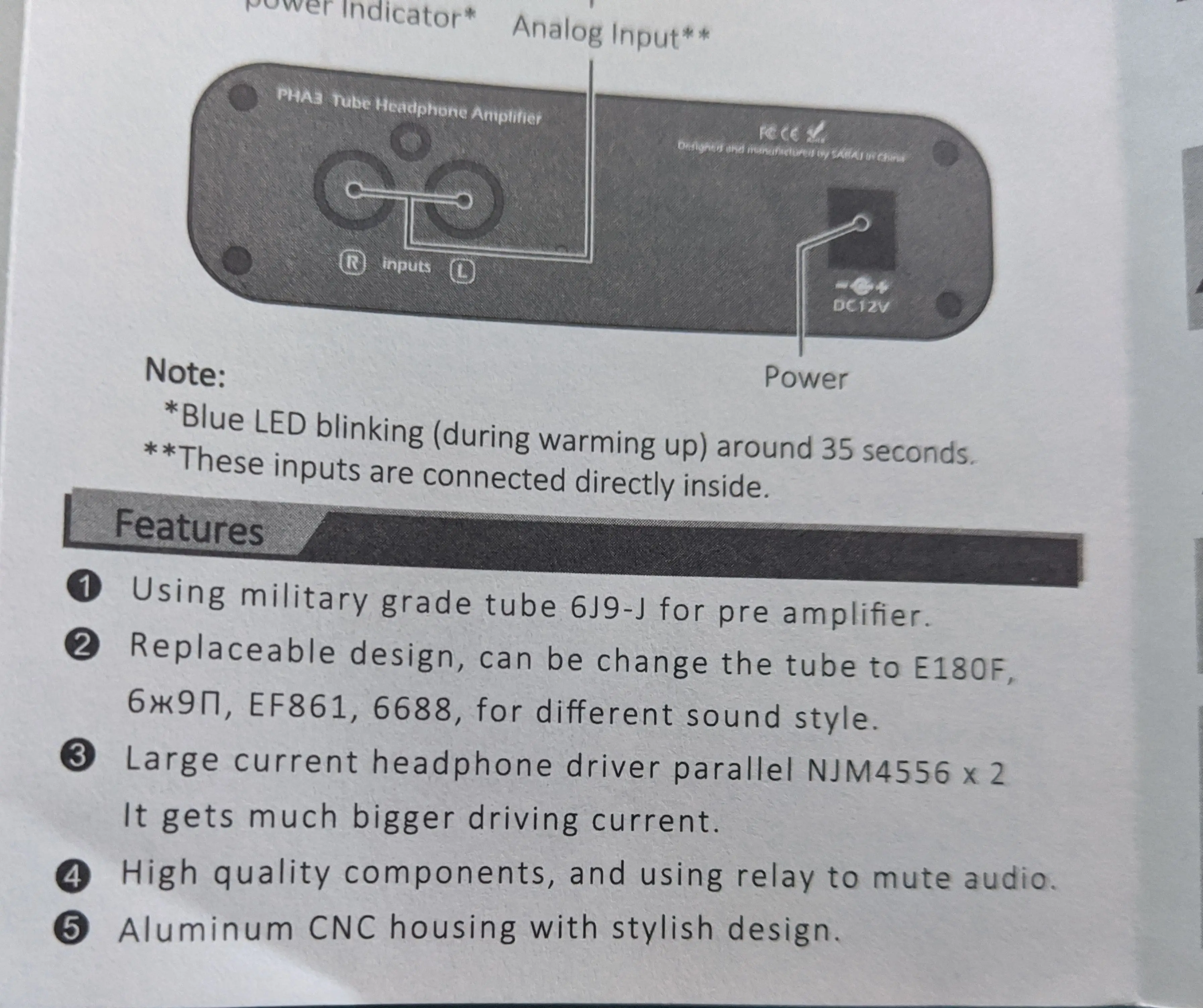 Доставка быстрая. Упаковано отлично. Привез курьер. Внешне выглядит потрясающе - очень компактное и аккуратное устройство. Во время работы корпус нагревается лишь слегка. Лампы трогать не решился. Касательно звука - разница заметна, не могу сказать что это прямо то что я ожидал, но и не разочарован. Однозначно слышно больше деталей в композициях, появилась какая-то "глубина". Затрудняюсь правильно описать... Короче с девайсом звук 100% изменился в лучшую сторону. Может быть после "прогрева", может быть с другими лампами звук еще больше изменится в лучшую сторону. Слушать музыку стало приятнее БЕЗ эквалайзера, теперь он кажется лишним. Лампы в комплекте 6J9, предполагаю что это аналог советских 6ж9 и схожих с ними. Попробую найти у какого-нибудь деда на барахолке другие лампы, послушаю с ними. Пока что полностью доволен! Продавцу спасибо!