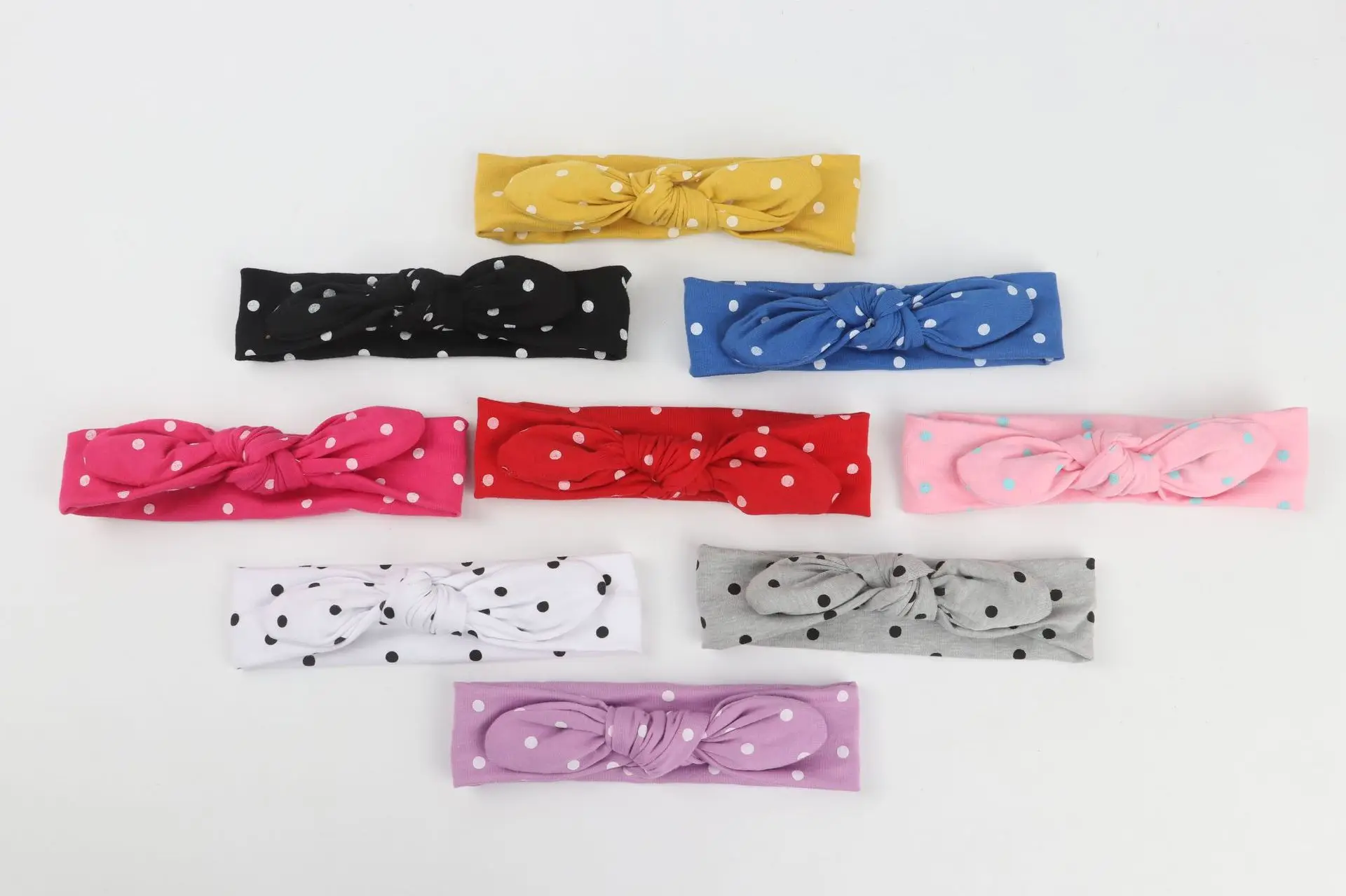 Повязка на голову Детская в горошек, хлопковые повязки с узлом, бантик для волос