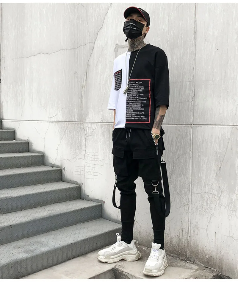 Новые горячие боковые карманы узкие брюки мужские хип-хоп лоскутные брюки карго рваные спортивные брюки джоггеры брюки мужские модные длинные брюки