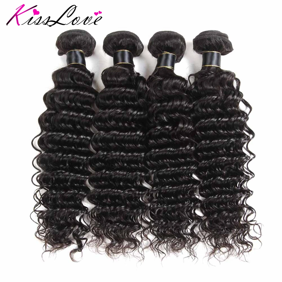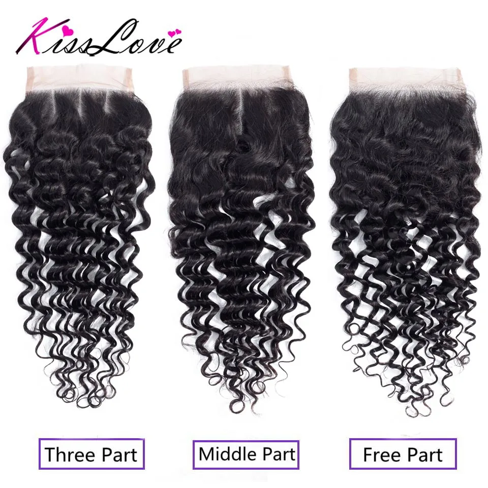 Бразильские волосы Kiss Love, глубокая волна, пряди с закрытием, человеческие волосы, 3 пряди, с кружевной застежкой, средние пропорции, волосы Remy