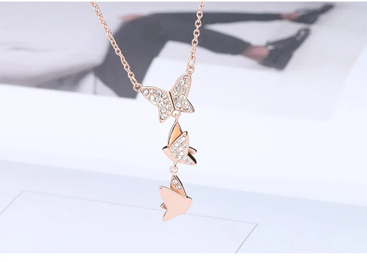 2022 летнее популярное женское ожерелье с кристаллами от Swarovski простое и просторное дикое модное ожерелье из розового золота с бабочкой милый подарок