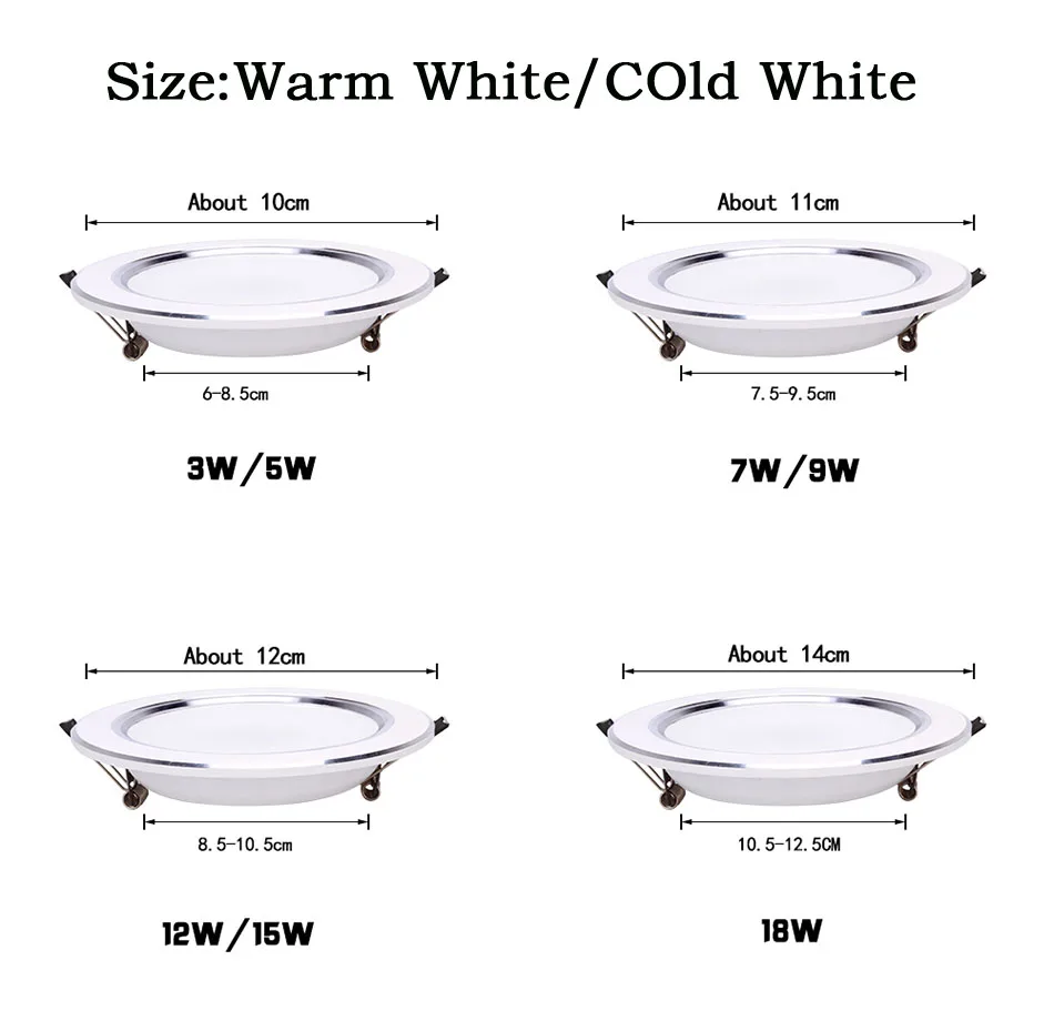 6 шт. ультра яркий круглый светодиодный светильник 3 Вт 5 Вт 7 Вт 9 Вт 12 Вт 15 Вт 18 Вт алюминиевый AC110V 220 В светодиодный светсветильник льник потолочное утопленное пятно