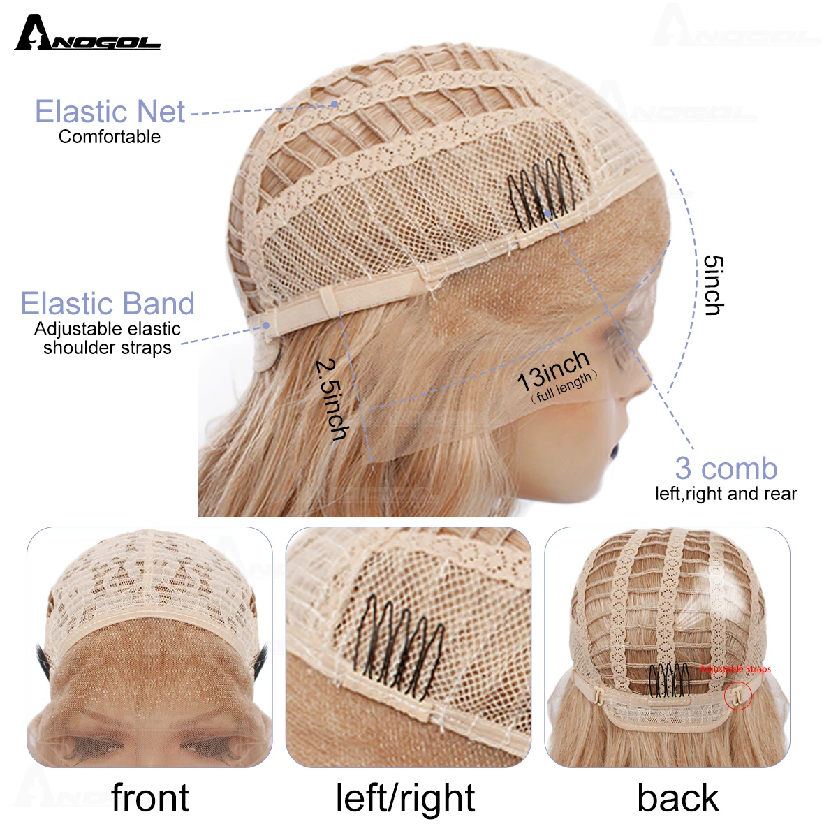 ANOGOL синтетические парики 13 х2, 5 на шнуровке спереди, 613 блонд, короткий, с глубокой волной, фронтальные волосы, парик 360 U-образной части, на шнуровке спереди, парик из волокна для женщин