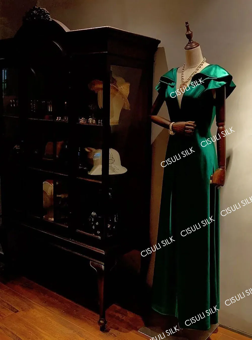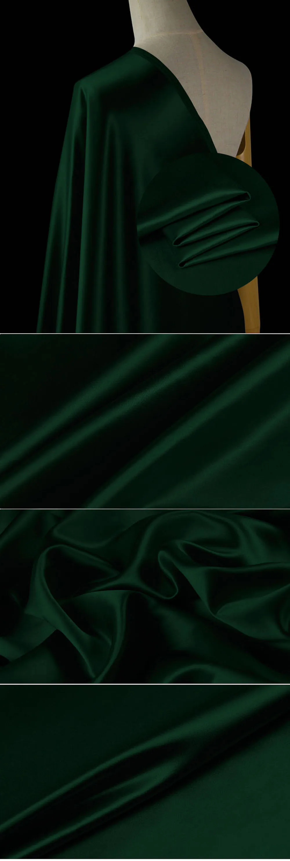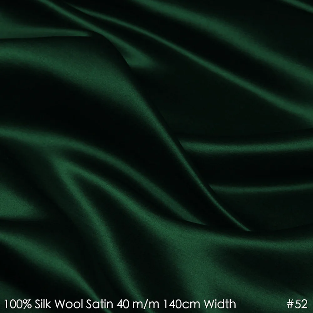 Шелковая шерстяная атласная ткань 40 момов, ширина 140 см28% шелк + 72% шерсть, атласная ткань для шитья длинного зимнего платья-No.52 темно-зеленая