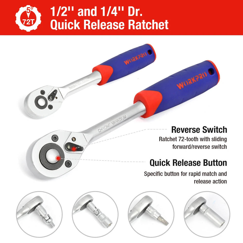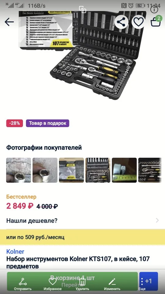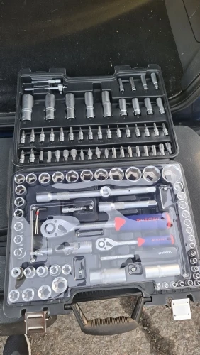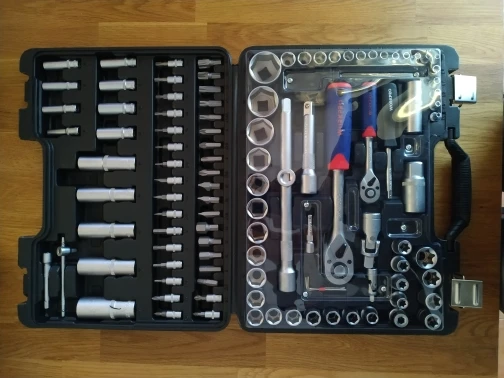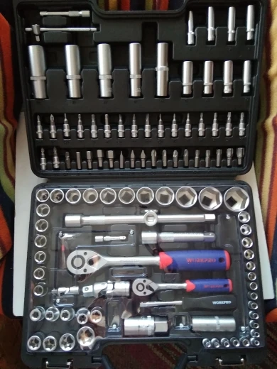 Просто отличный набор со множеством насадок всевозможных размеров и форм. Качество на очень высоком уровне. Удобный кейс для переноски и хранения с прорезиненной ручкой и металлическими замками. Все разложено компактно и на виду. Удлиненная головка на 16 (под свечи зажигания) имеет резиновую вставку для удобства извлечения открученной свечи. Вообщем, просмотрите внимательно фото и описание товара. По факту все выглядит презентабельнее даже. Фирма-производитель, оказывается, давно на рынке и известна во многих странах (информация есть в интернете). Инструмент свиду крепок и надежен, в работе посмотрим. Всем рекомендую!