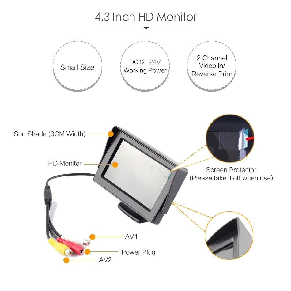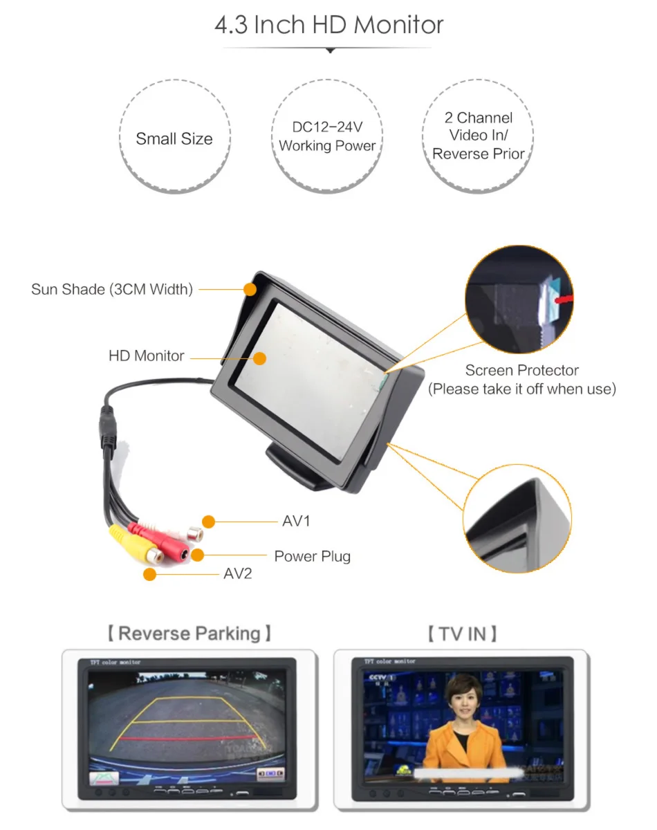 Автомобильный Грузовик Автобус 4,3 дюйма 12 В 24 В HD светодиодный стенд монитор экран с камерой заднего вида Комплект для парковки