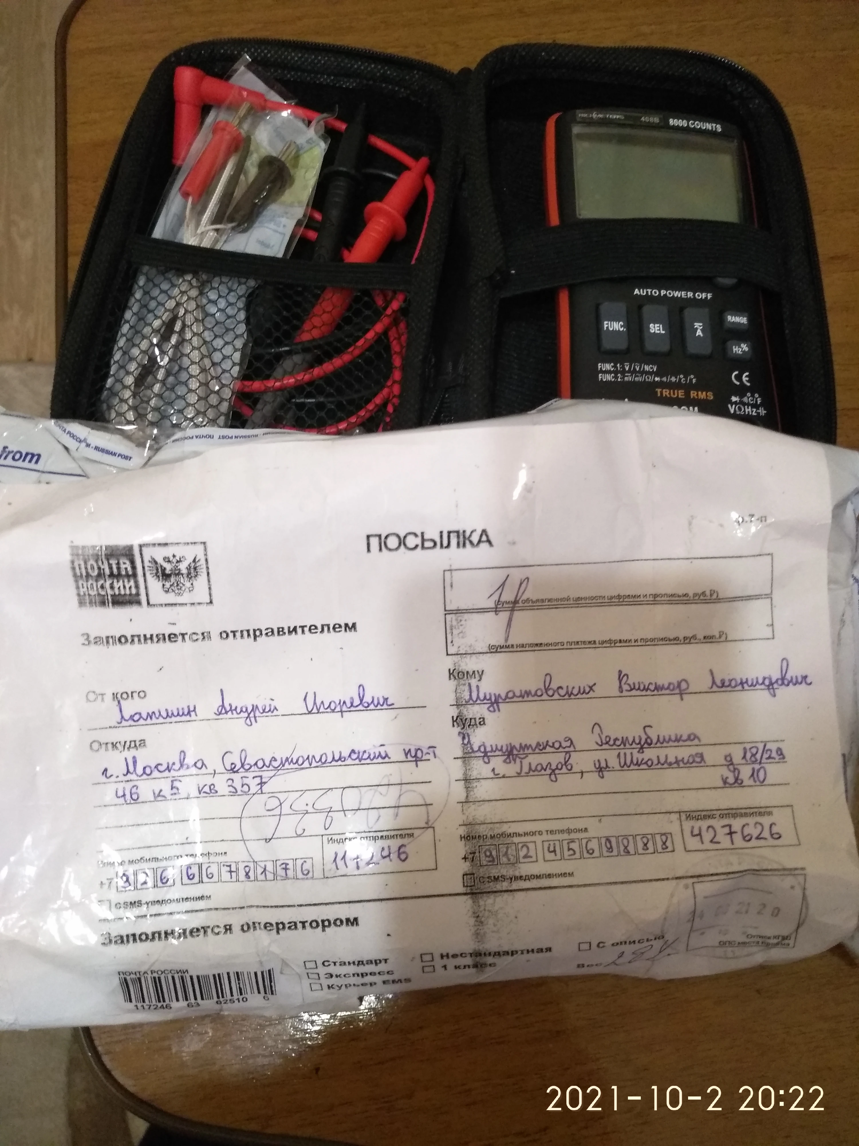Товар получен!До ХМАО дошол за 2-е недели!Упаковать могли бы и получше!!!Проверил,измерения плавают,автомат работает только по кнопкам!Можно сказать что его НЕТ!!!Автомат не переключает между измерениями напряжения,сопротивление,прозвонка!За такие деньги можно заказать и по Лучше!Не советую к приобретению!
