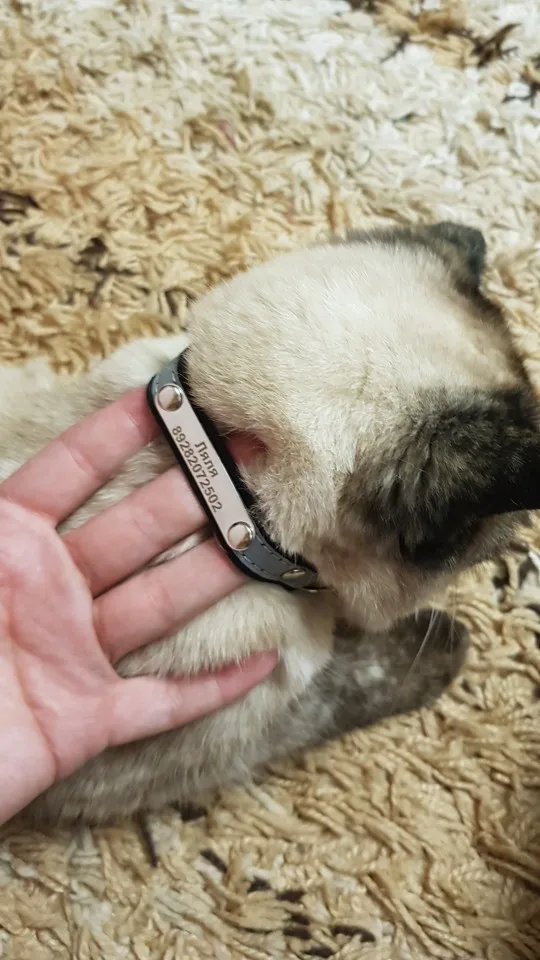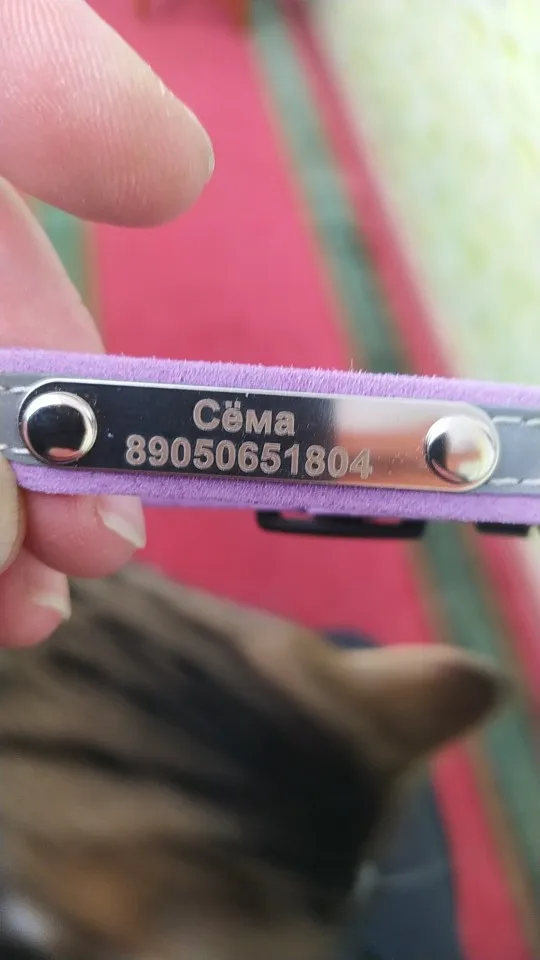 Хороший ошейник, светоотражающий. Написали всё верно. Но очень уж хлипкая застёжка. Прям очень не надёжная. Гравировка чётко видна. Заказал потому что один раз, моя бенгальская кошка умудрилась выпрыгнуть в окно, залезть в подвал и сидеть там день. Как я перепугался, словами не передать..