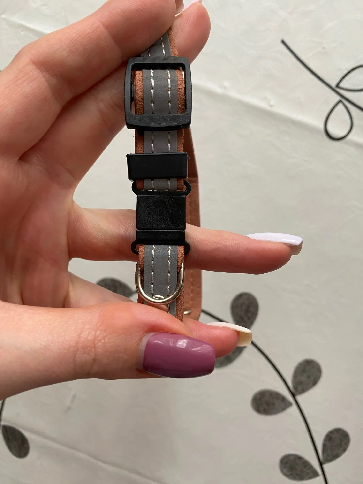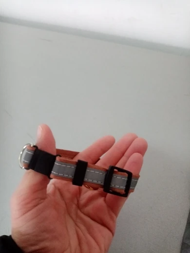 Замечательный ошейник, очень мягкий и с виду прочный (как для кота либо мелких пород) очень четкая надпись и действительно очень хорошо отражает яркий свет.