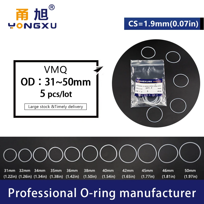 Белое Силиконовое уплотнительное кольцо 5 шт.лот, толщина CS1.9mm OD3132343536384042454650*1,9 мм VMQ, уплотнительное резиновое кольцо, прокладка, шайба