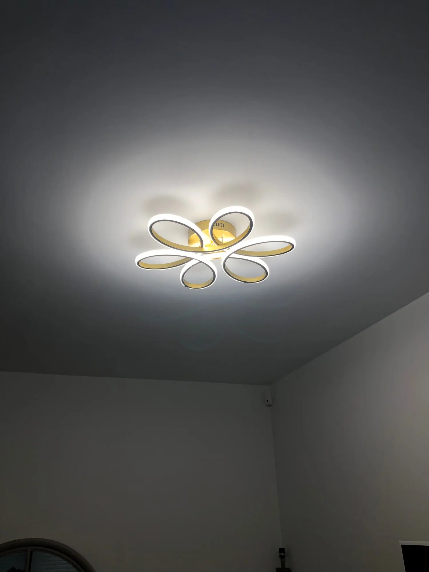 Легкая Лампа, очень красивая и элегантная. Я рекомендую купить его с пультом дистанционного управления. Коробка была немного повреждена, но лампа не получила никаких повреждений. Настоятельно рекомендуется.