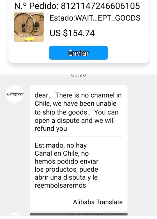 Плохой магазин, никогда не покупаю в нем очень дешево, это предложение, и они тоже нет, я купил шины mavic, которые предлагают мне все + стоимость доставки + комиссионные и банковские сборы для использования карт, после нескольких недель подготовки они не будут отправлять заказ, так как Цена поднялась И не направляйте в Чили ahhh, но если они зарядили все и возврат не находится в руках, и они также не ответят, если вы потеряете или гарантируете продукт, так как это магазин и самая разочаровывающая Aliexpress не разрешает им ни один плохой магазин никогда не покупаю, я гарантирую